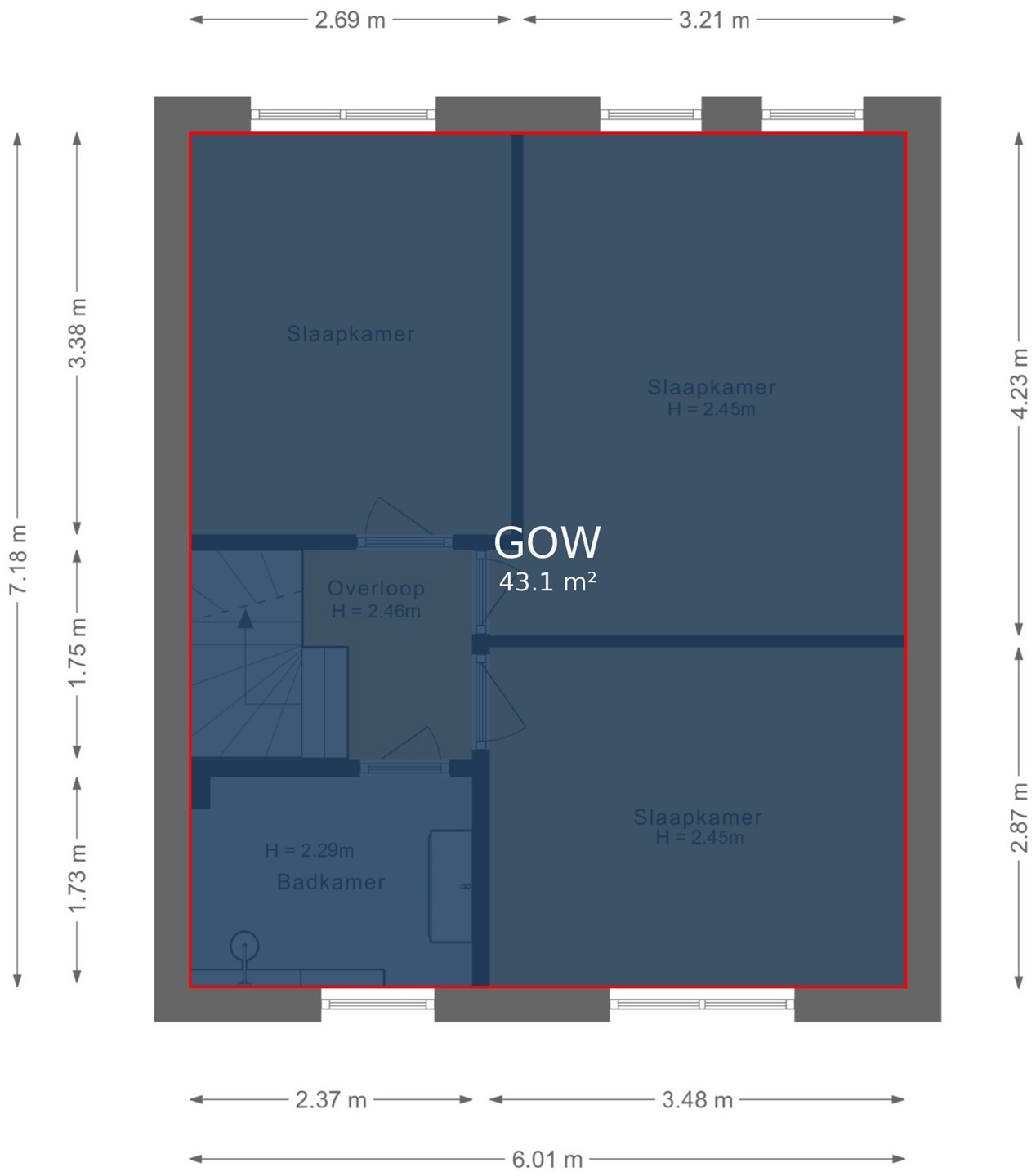 De CV-ruimte/bergruimte is apart te bereiken. Totale vloeroppervlakte (ca. 43m2).