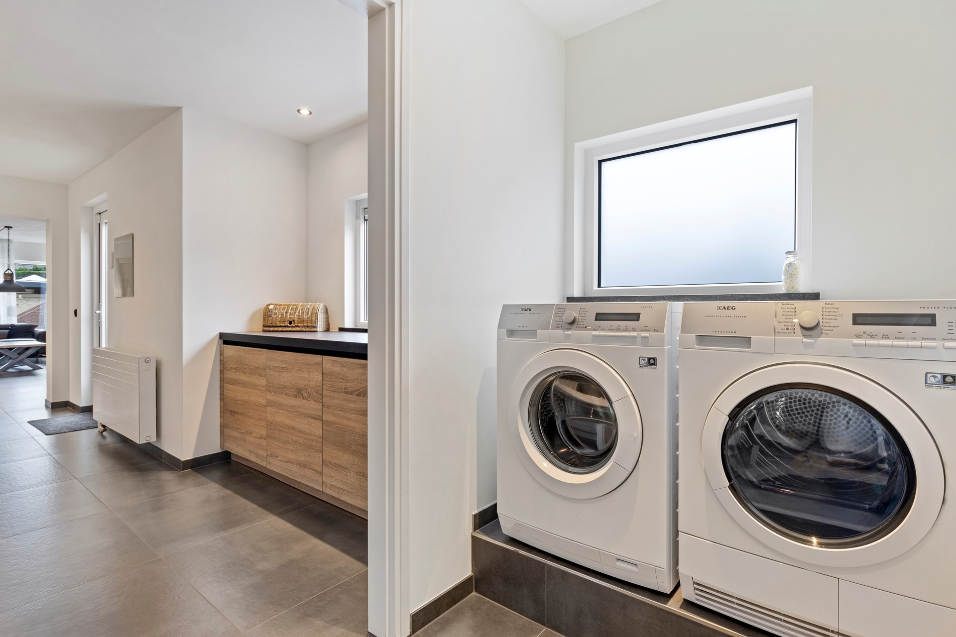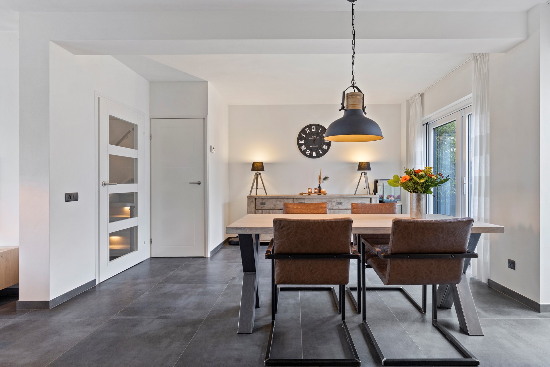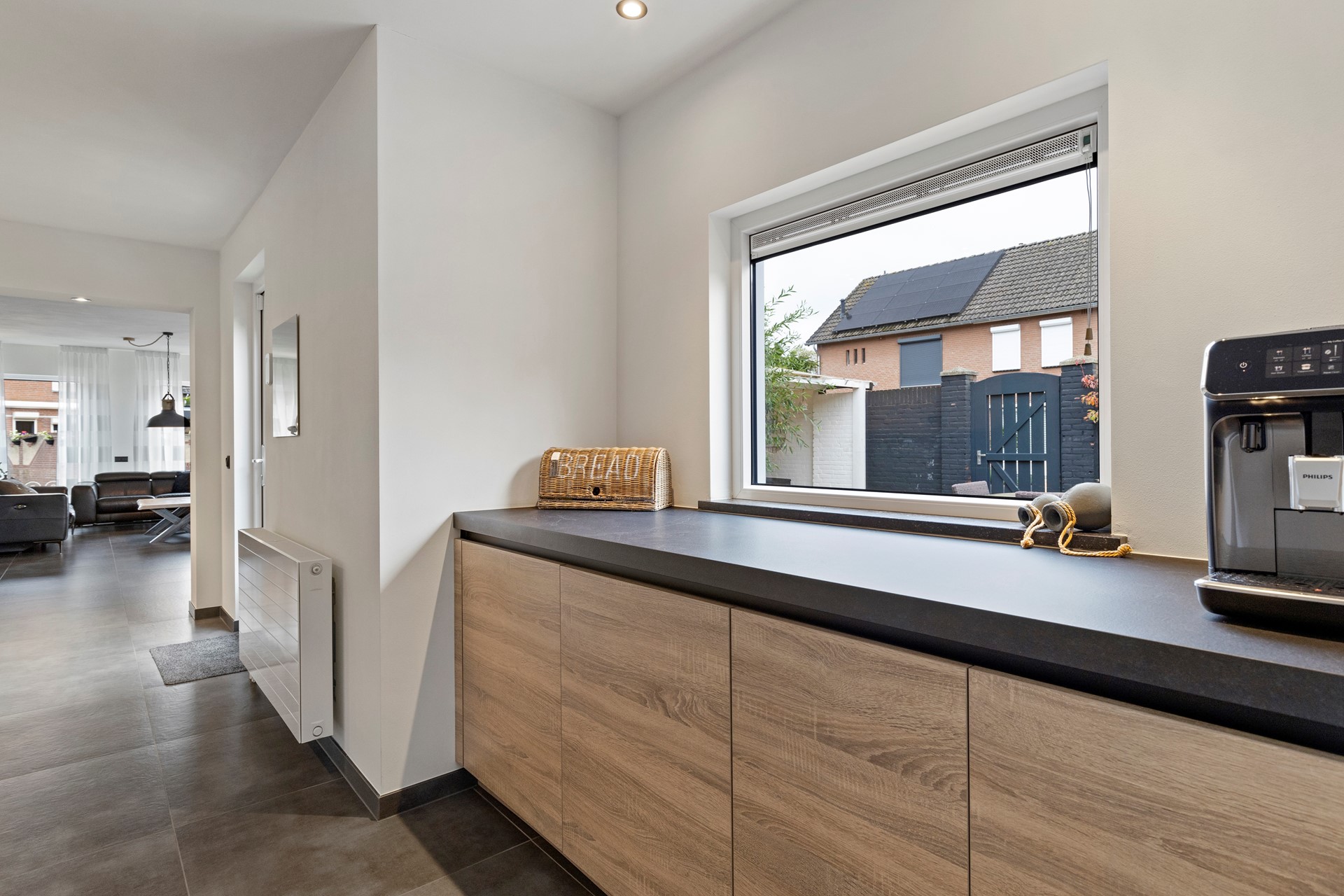 De begane grond is uitstekend afgewerkt met een moderne grote antracieten tegelvloer met vloerverwarming, een luxe keuken met A-merk apparatuur, strak gestuckte wanden en plafonds, nieuwe binnendeuren, plafond inbouwspots en nieuw schakelmateriaal.