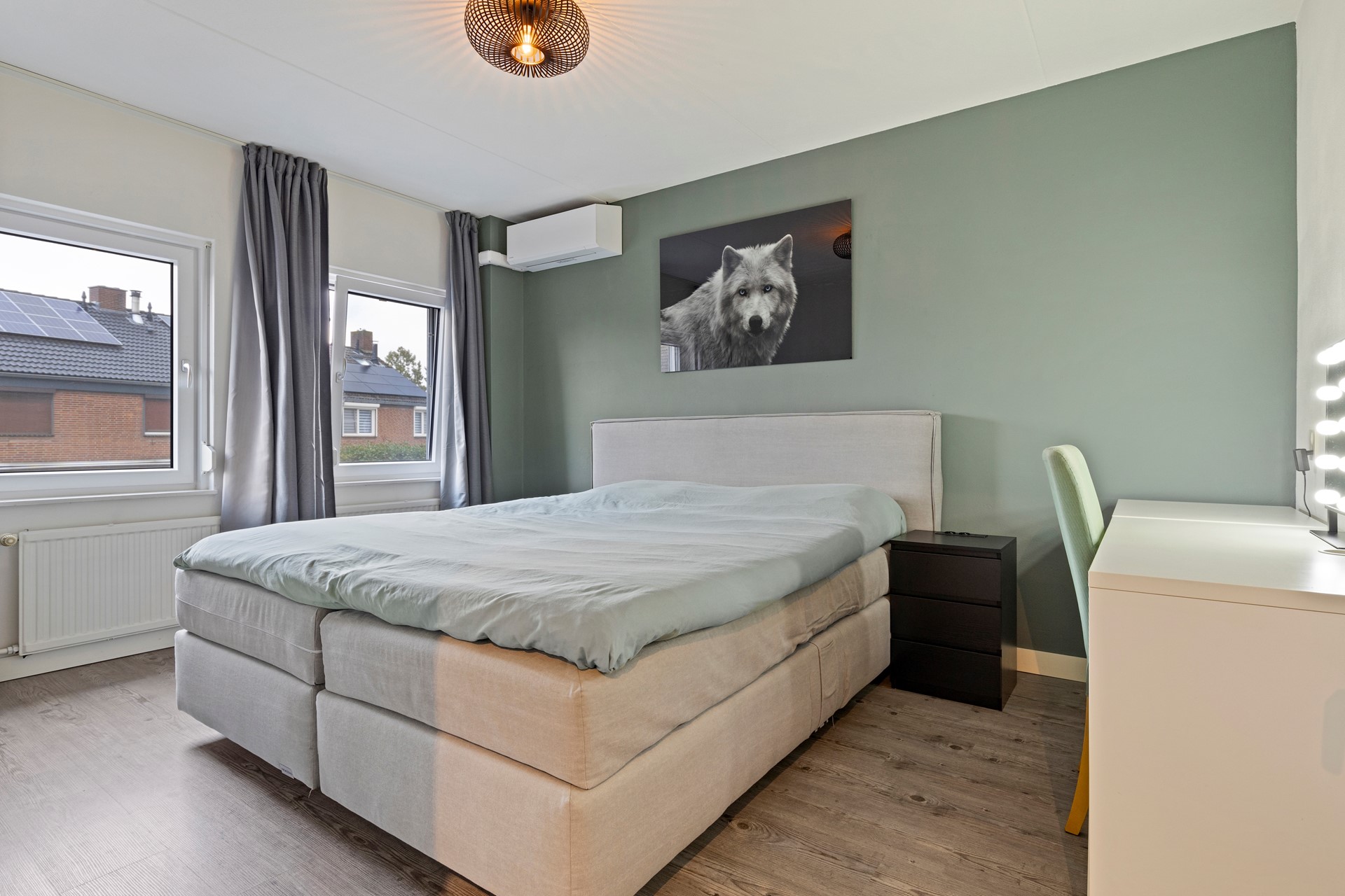 De 3 slaapkamers(ca. 9, 10 en 13,5m2) hebben een prettig formaat en veel lichtinval. De master bedroom heeft een airco die de hele verdieping verkoelt en verwarmt. De moderne nieuwe geheel betegelde badkamer (ca. 4m2) heeft een 2 persoons wastafel met ladenkast, een 2 persoons spiegel met verwarming, een ruime inloopdouche met thermostaatkraan en regendouche, een design handdoekradiator, een zwevend closet, plafond inbouwspots, vloerverwarming, afzuiging en een buitenraam. Het plafond op de badkamer is anti statisch wat zorgt dat er geen vocht op komt. Over de hele verdieping ligt een moderne laminaatvloer en alle wanden en plafonds zijn strak afgewerkt.