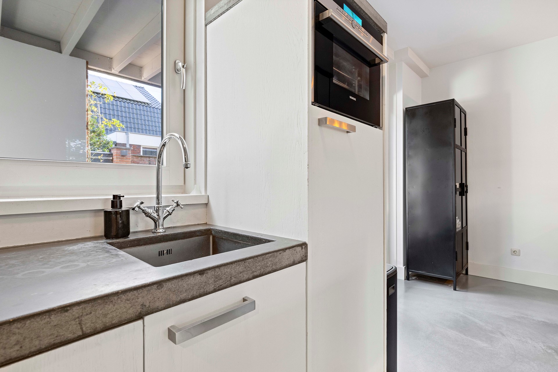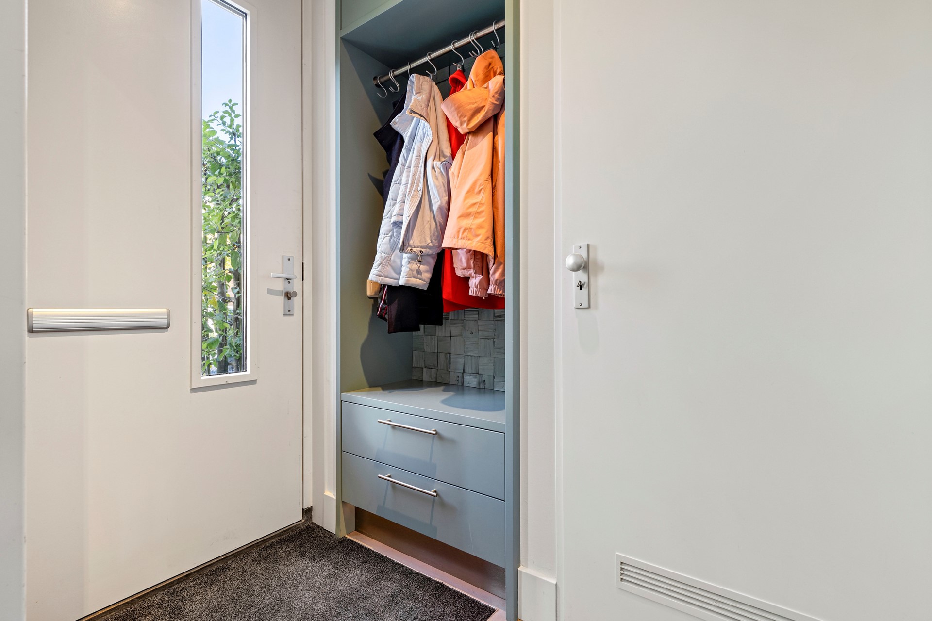Middels de verzorgd aangelegde voortuin is de entree tot de woning te bereiken. De entree/ hal met ingebouwde garderobekast geeft toegang tot de meterkast, de toiletruimte en de woonkamer. De toiletruimte is voorzien van een zwevend closet, een fonteintje en inbouwspots. De woonkamer (ca. 29m2) krijgt veel natuurlijk lichtinval en kijkt aan de voorzijde uit op de speelweide. De woonkamer heeft een handige trapkast voor extra bergruimte. De open keuken is aan de achterzijde gesitueerd en is ingericht met een 3-pitsgasfornuis, afzuigkap, oven, stoomoven, koelkast en vaatwasser. De gehele begane grond is voorzien van een gietvloer met vloerverwarming en airco. Middels openslaande deuren is er toegang tot de tuin.