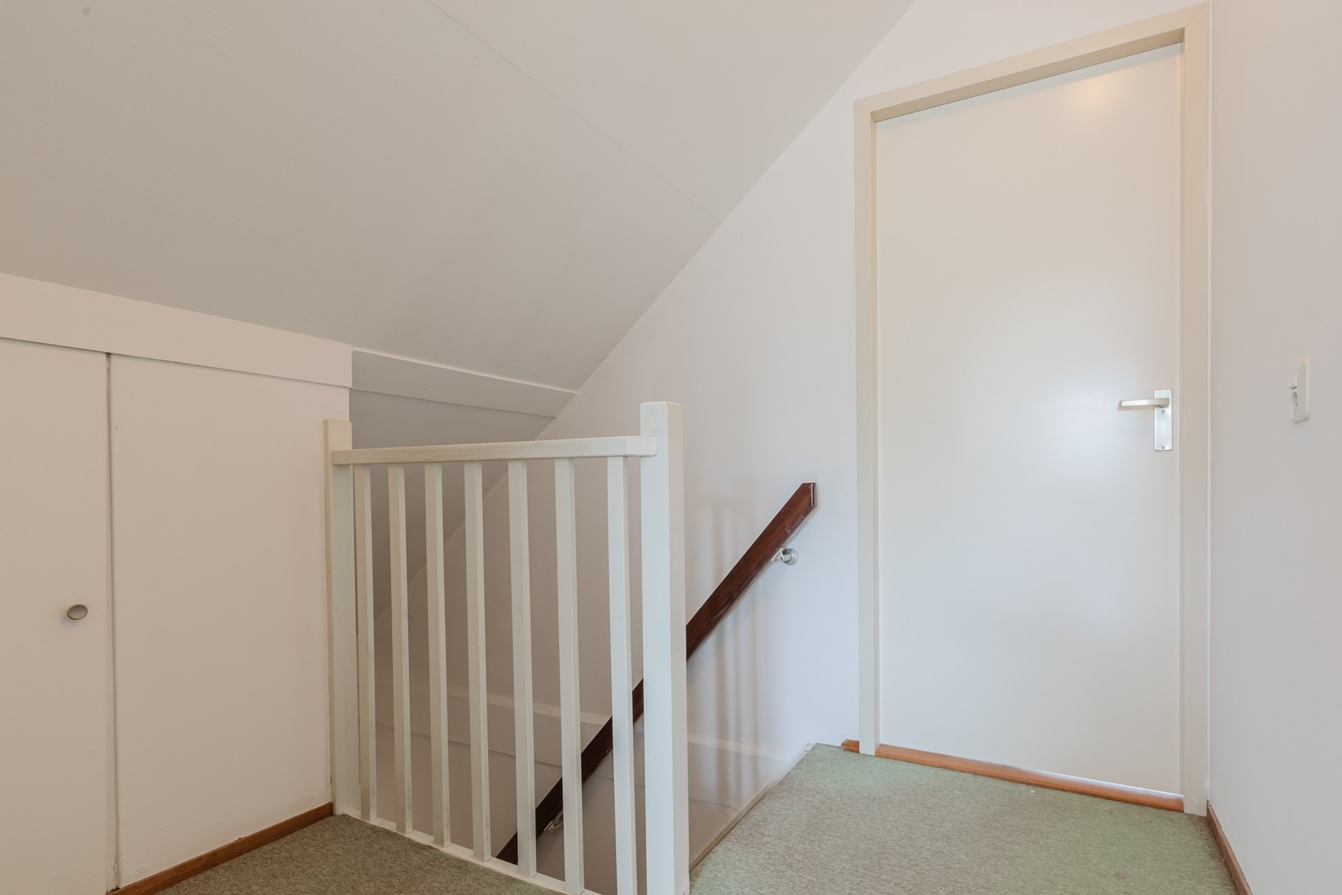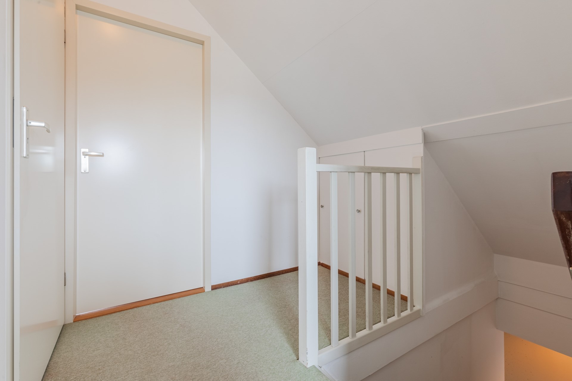 De overloop geeft toegang tot 2 slaapkamers (ca. 8 en 16m2) en een ruimte die gereed is voor het maken van een badkamer. Momenteel doet deze ruimte dienst als opslag. Achter de knieschotten op de overloop is nog extra opbergruimte.