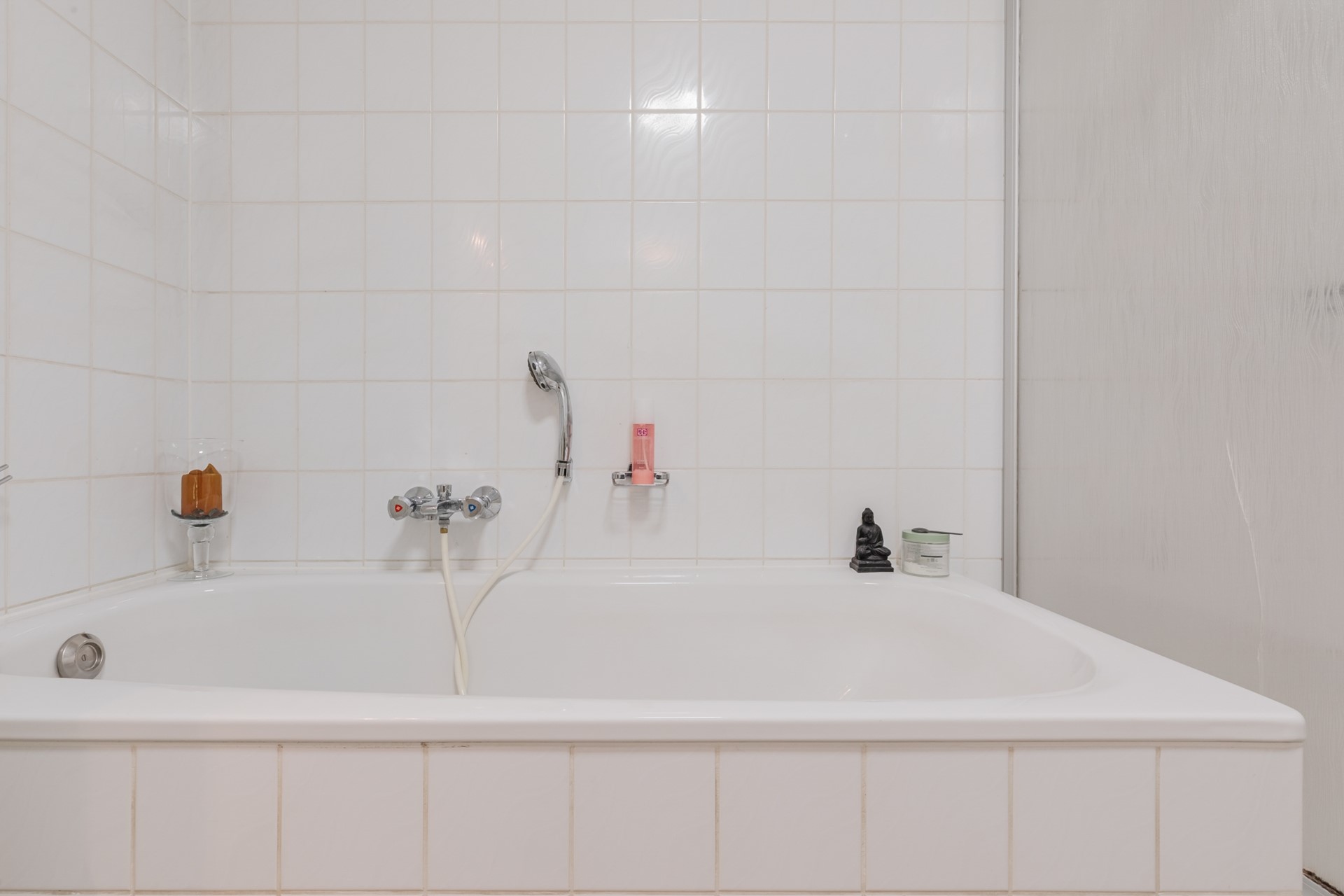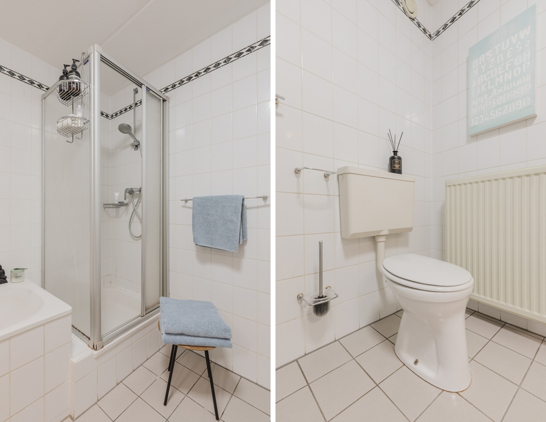 Badkamer (ca. 9,5m2) heeft een ligbad, douche, staand closet, wastafel met meubel en handdoekkast en mechanische afzuiging.