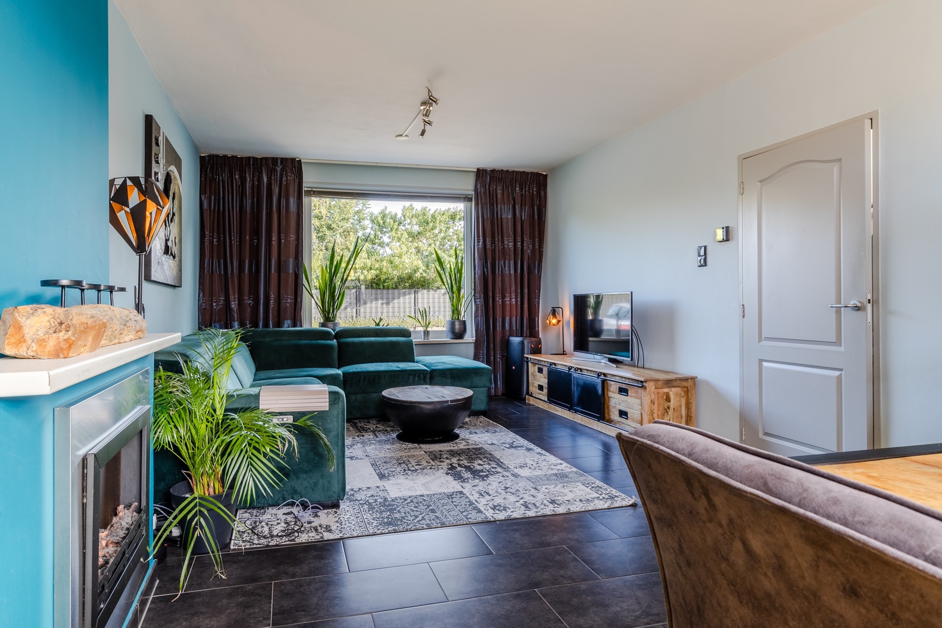 De woonkamer is voorzien van een sfeerhaard. De separate leefkeuken (ca. 9m2) heeft een keukenblok ingericht met een 5 pits gasfornuis, afzuigkap, koelkast en magnetron. Vanuit de keuken is er toegang tot de tuin.