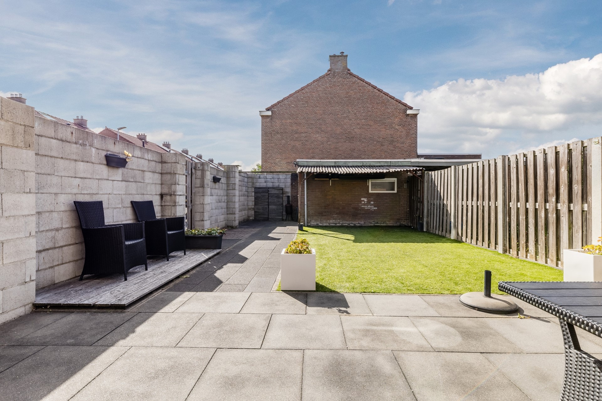 De omheinde voortuin bestaat uit een kiezelgazon, een beklinkerd looppad en een bloembak met beplanting. De royale zonnige achtertuin is gelegen op het zuiden, is geheel omheind en heeft een vrije achterom. Aan de woning ligt een beklinkerd terras, een looppad heeft toegang tot de stenen berging (ca. 9m2), aan de berging zit een klein afdak en een onderhoudsvriendelijk kunstgazon.