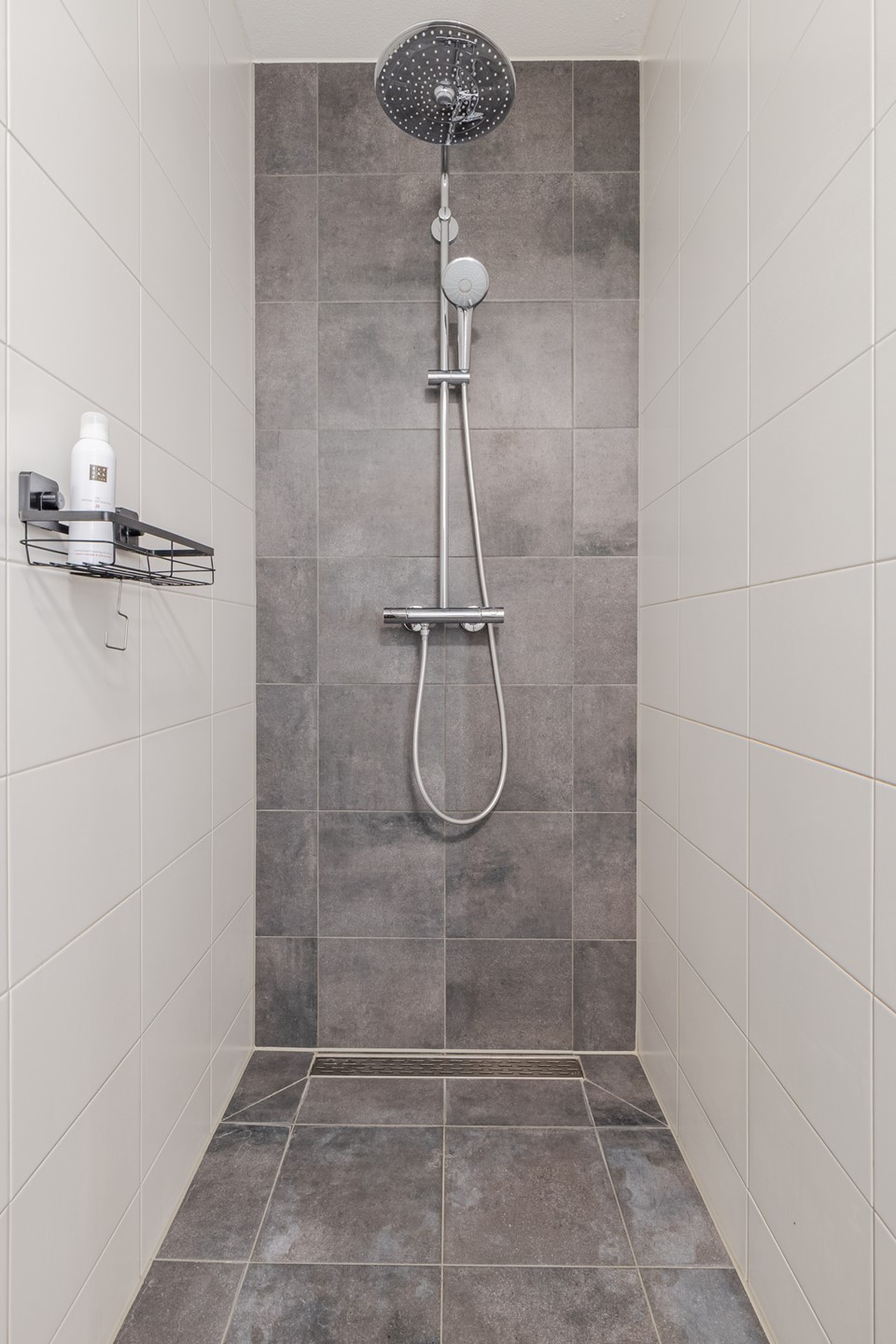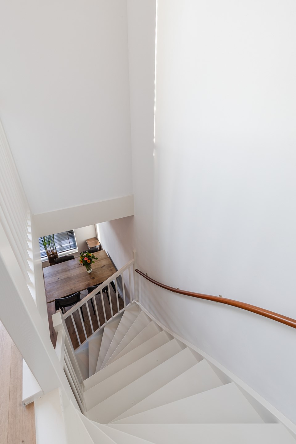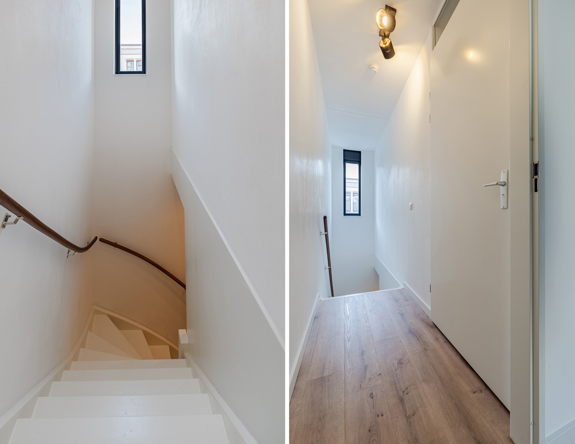 omvormer voor de zonnepanelen. Er is plek genoeg voor het opbergen van de strijkplank, wasmanden etc. Een loopdeur geeft toegang tot het dakterras. De slaapverdieping is functioneel ingericht. Kenmerkend is de zee aan lichtinval. De hele verdieping is voorzien van een houtlook PVC-vloer met vloerverwarming.