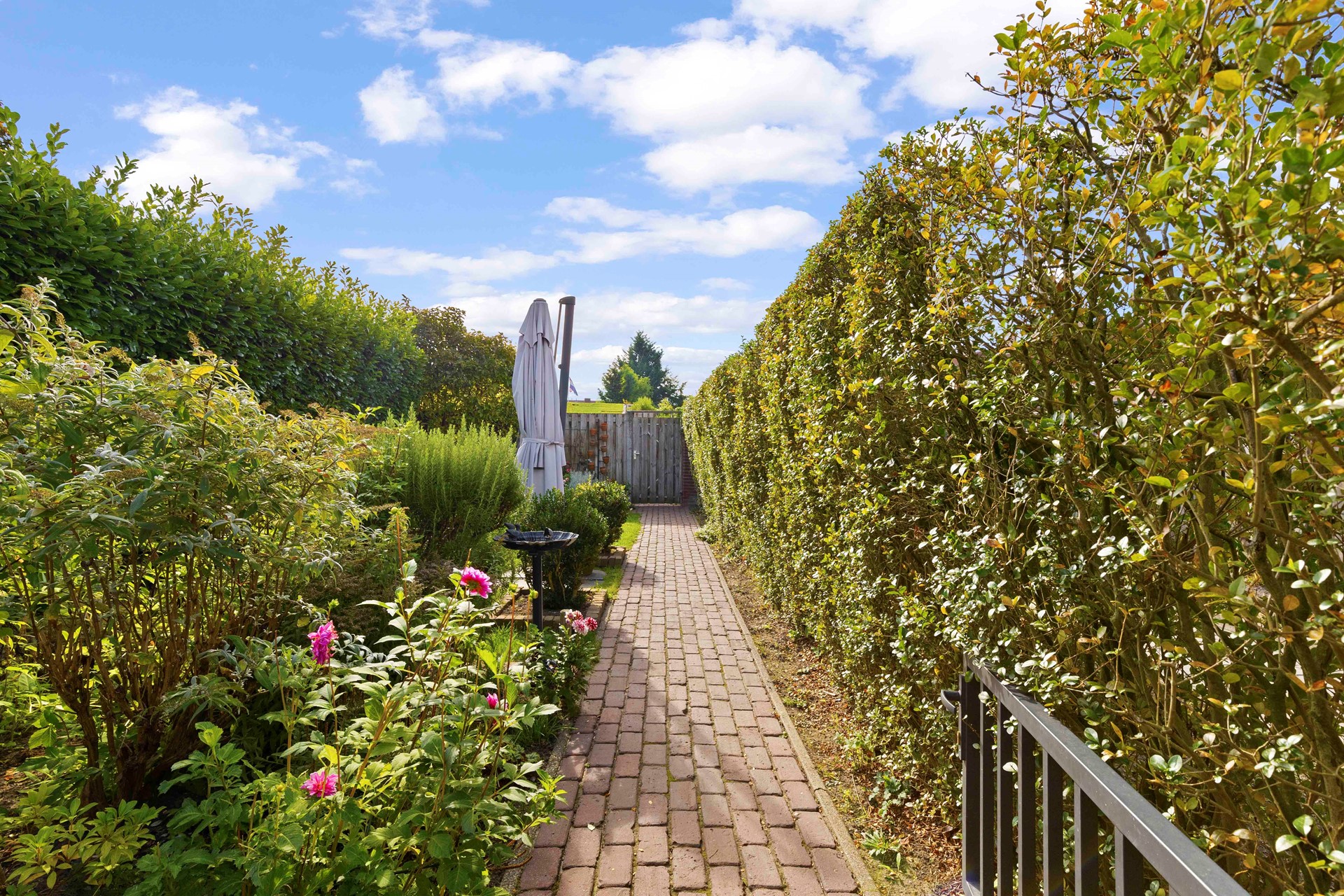 De sfeervol aangelegde achtertuin heeft een glazen overkapping aan de woning waar je al vroeg in het jaar kunt genieten van de zon. De tuin heeft verder veel verschillende beplanting en een gazon. Vanuit de tuin is er toegang tot de volledig geïsoleerde berging (ca. 7m2) met HR++ glas welke voorheen als praktijkruimte gebruikt is. De tuin is gelegen op het zuiden en is te bereiken middels een vrije achterom.