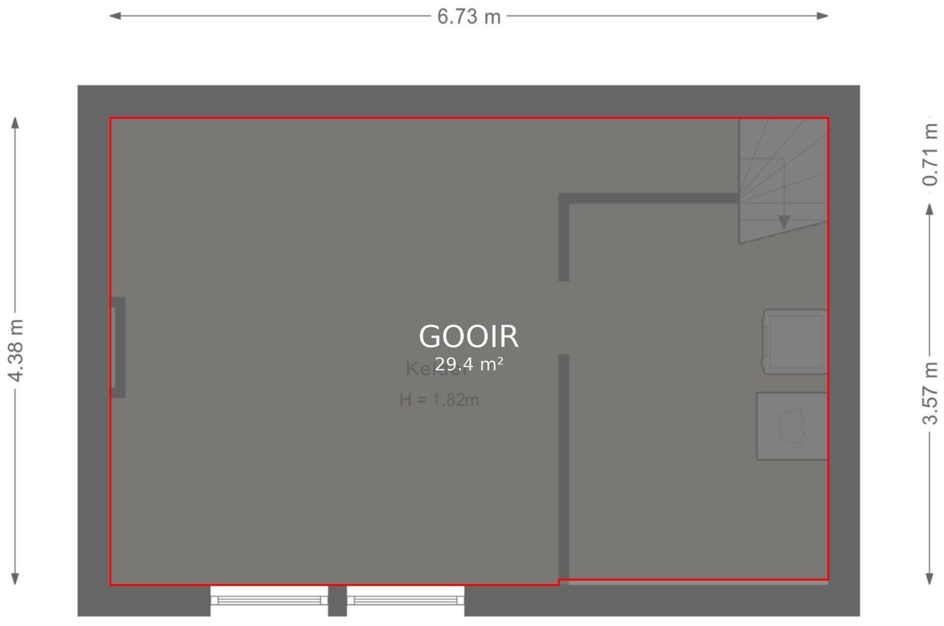 De praktische kelder (ca. 29 m²) bestaat uit twee compartimenten: een wasruimte met aansluitingen voor wasmachine, droger en omvormer voor de zonnepanelen, en een ruime bergkelder met ventilatie (koekoek).