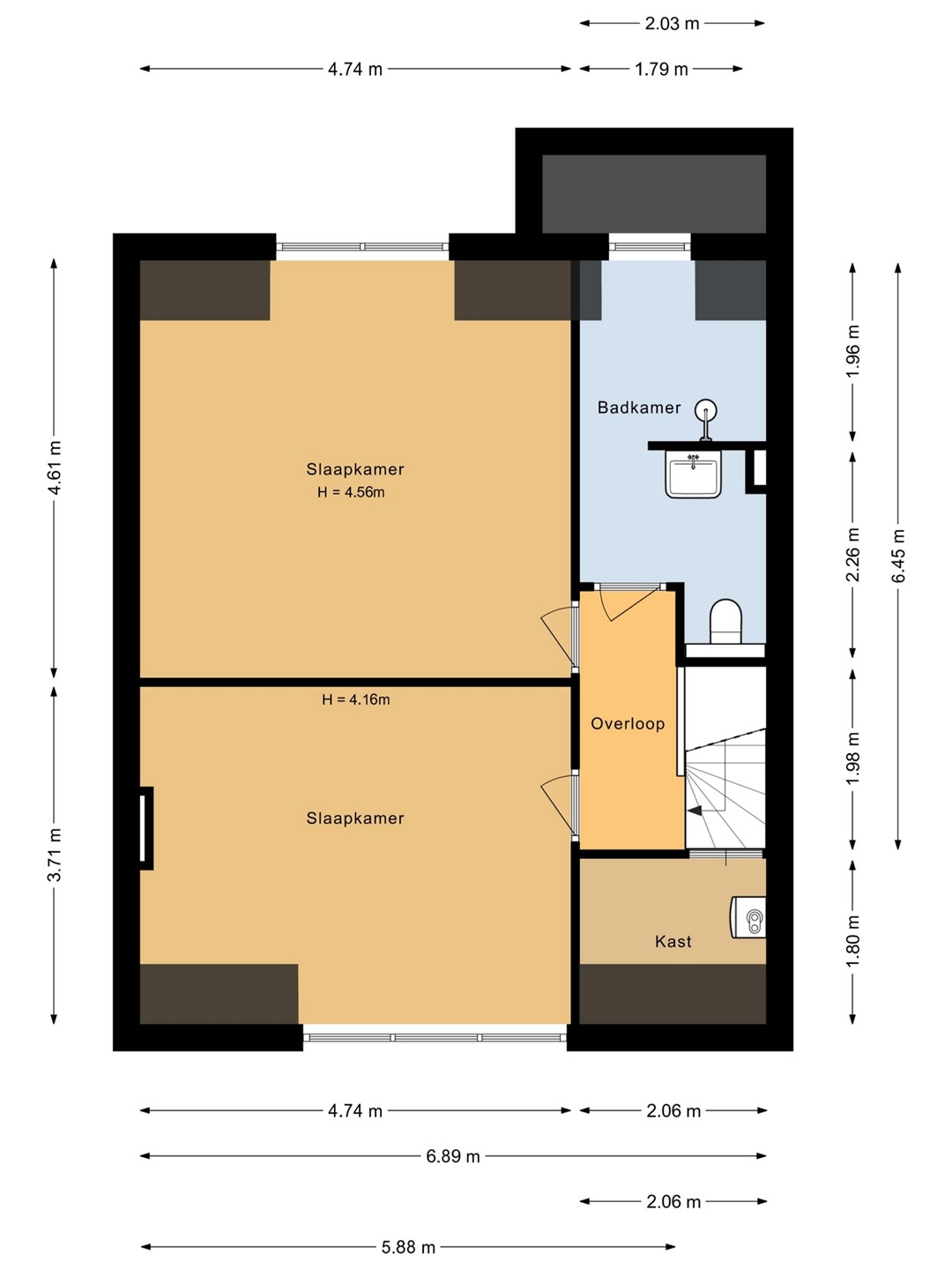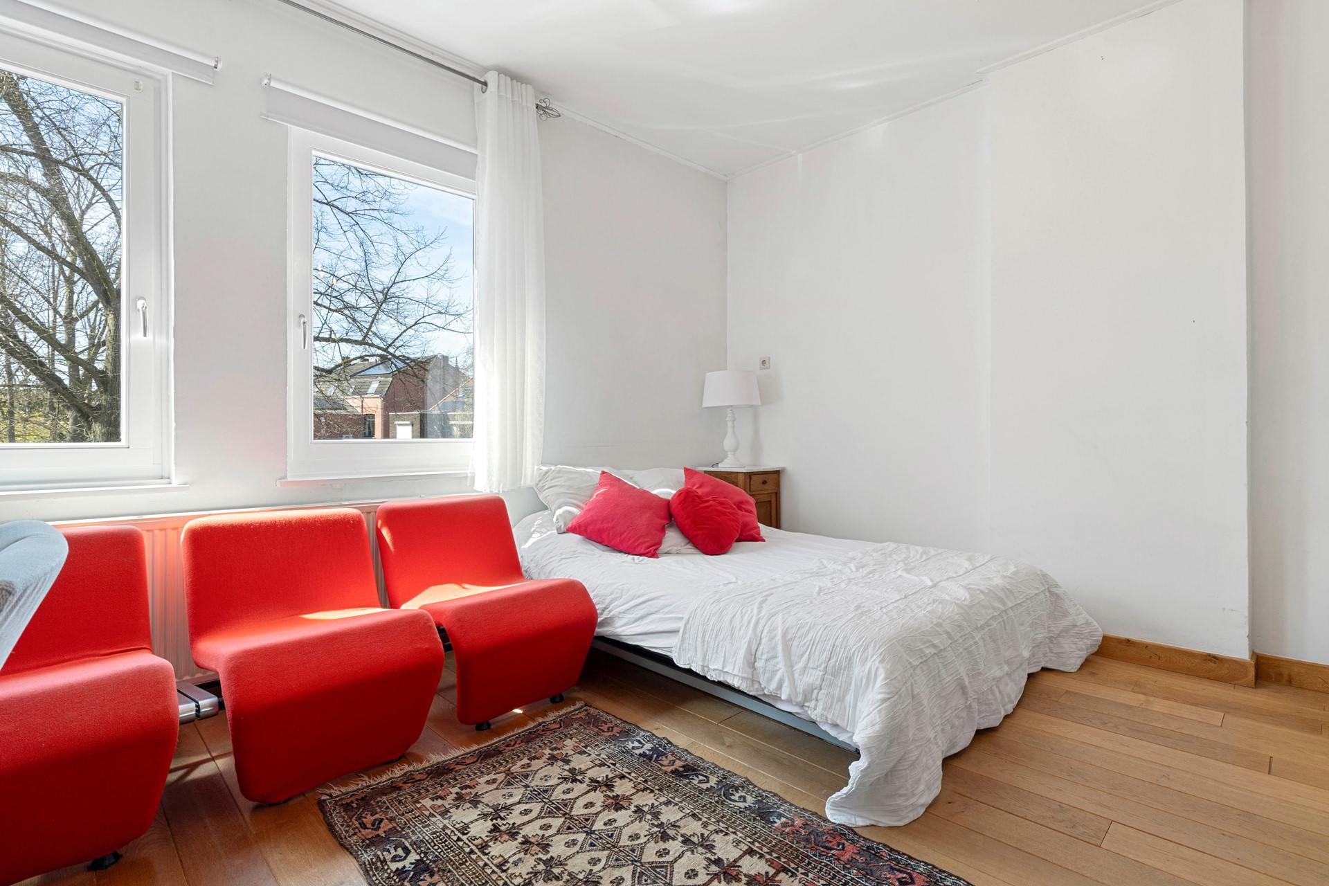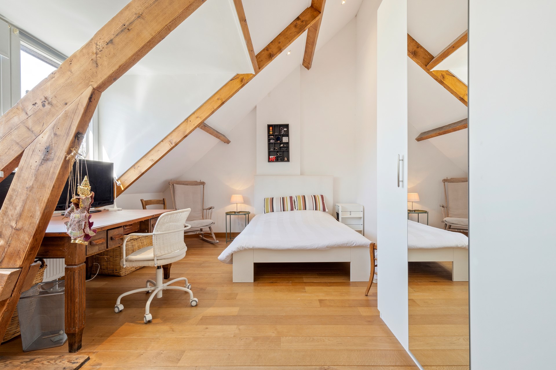 Via de originele trap bereikt u de volwaardige tweede verdieping met twee royale slaapkamers (ca. 17,5 m² en 22 m²), beide voorzien van een dakkapel, hoge plafonds en inbouwspots.