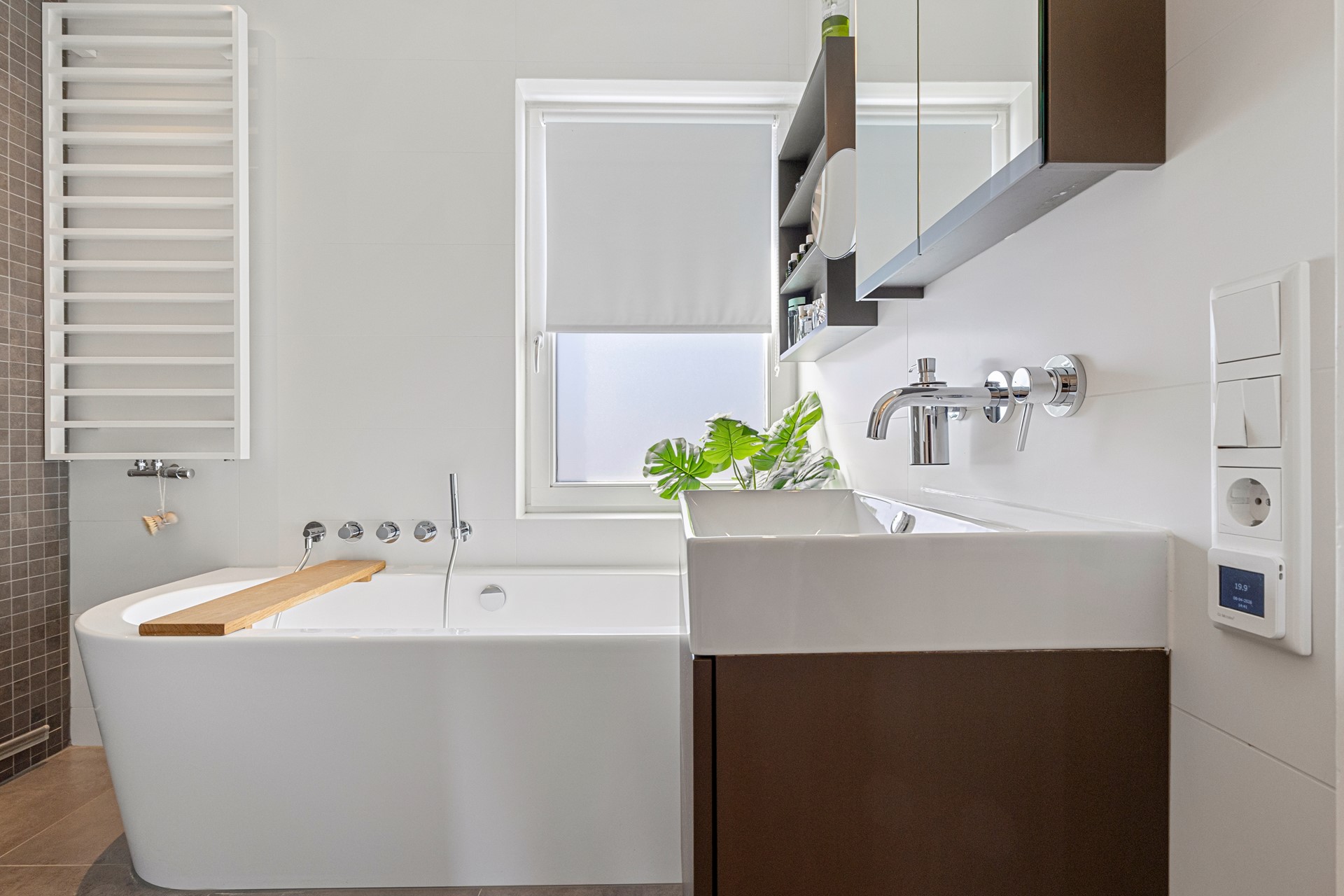 De badkamer ca.4m2) is compleet uitgevoerd met ligbad, inloopdouche met inbouwkranen, wastafelmeubel, designradiator en ventilatievenster.