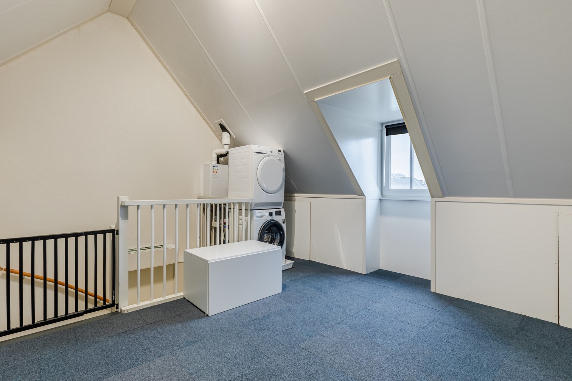 Middels een vaste trap is de zolderkamer te bereiken. De zolderkamer (ca. 21,5m2) is nog naar eigen inzicht in te richten en is zeer geschikt als 4e slaapkamer. De 2e verdieping is voorzien van een dakkapel met onderhoudsvrij keralit. Verder bevinden zich hier de witgoedaansluitingen, de combi CV-ketel (Intergas 2019), WTW-installatie en de omvormer van de 5 zonnepanelen.