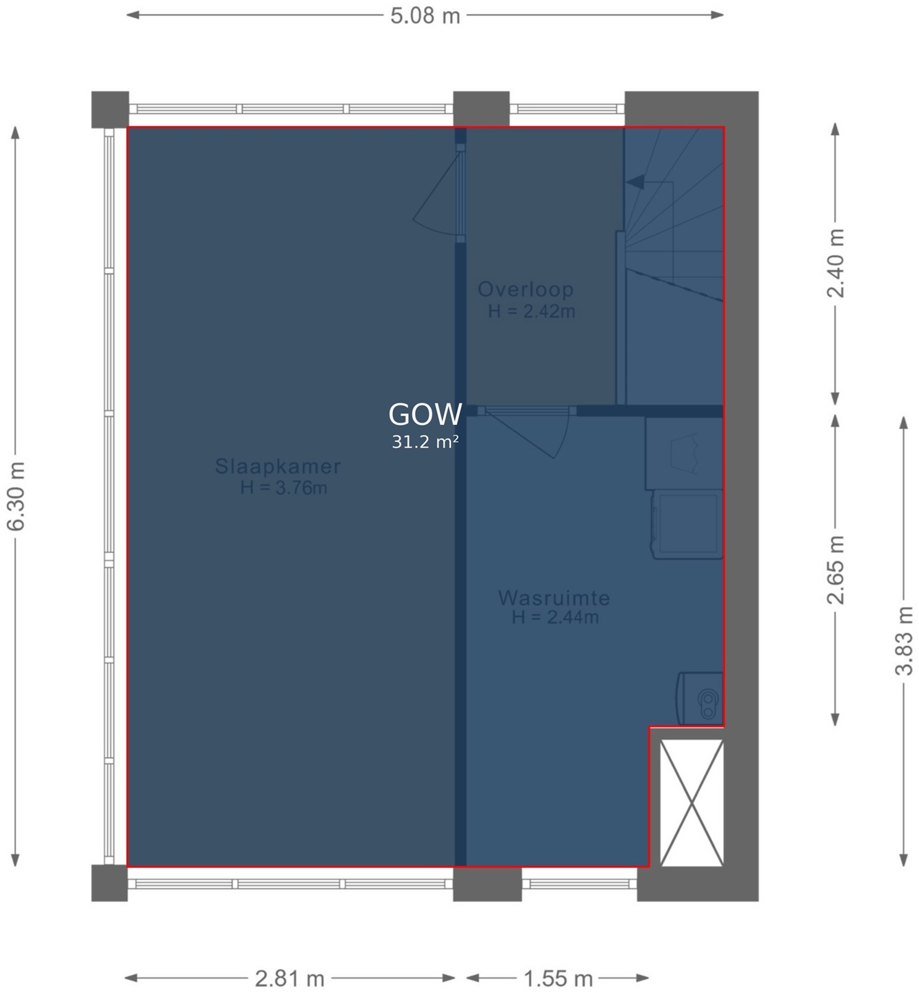 Via een vaste trap bereikt u de volwaardige zolderverdieping.