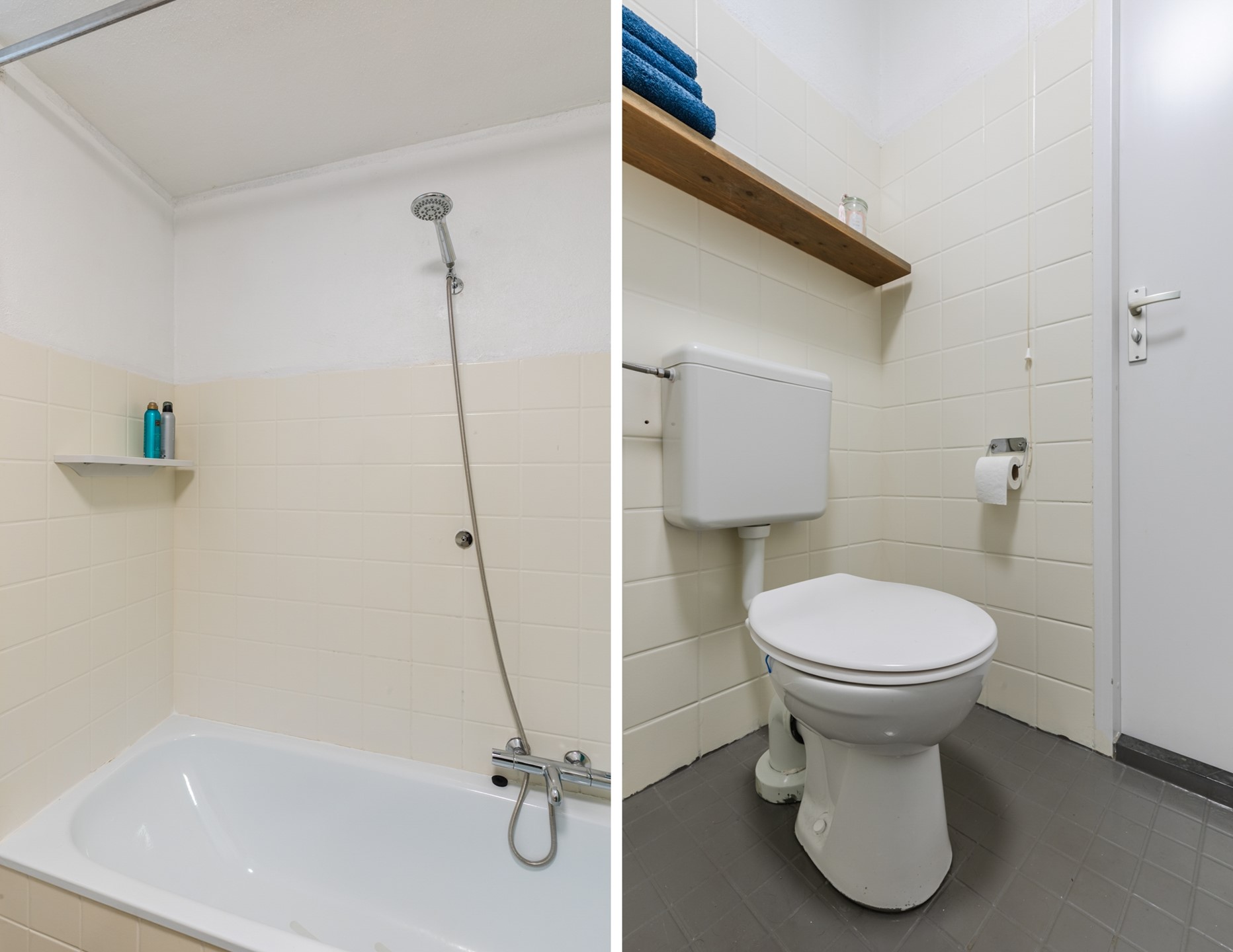 De overloop, voorzien van airco, geeft toegang tot 3 slaapkamers, de badkamer en een afsluitbaar portaal met de trapopgang naar de 1e verdieping. De masterbedroom is aan de achterzijde gelegen en is ca. 14,5m2 groot. Deze slaapkamer is voorzien van een grote inbouwkast. De slaapkamers aan de voorzijde zijn eveneens ruim van opzet, ca. 8m2 en 10m2 groot. Vanuit één slaapkamer is er toegang tot het balkon. De overloop en de slaapkamers zijn voorzien van een laminaatvloer. De badkamer is ingericht met een ligbad met douchefaciliteit, vaste wastafel en 2e toilet.