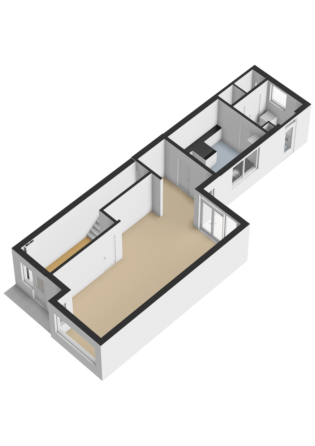 De begane grond is voorzien van aluminium kozijnen met grotendeels dubbel glas (2003).