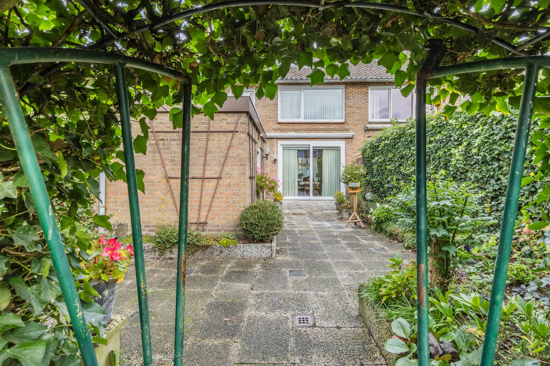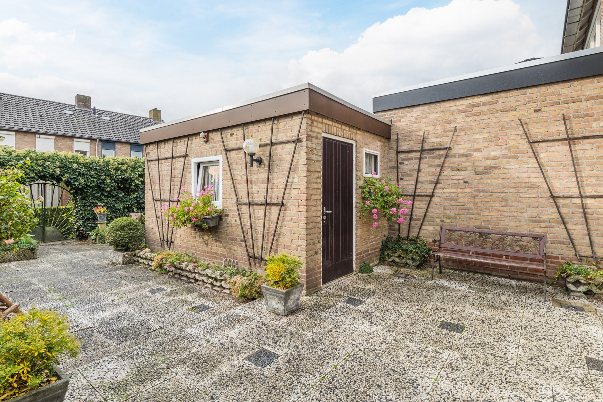 De achtertuin is gelegen op het zuiden en is onderhoudsvriendelijk ingericht. De tuin is grotendeels betegeld, heeft aan de zijkanten kleine borders met beplanting. Het terras aan de woning is voorzien van een zonnescherm. Er is een vrije achterom met dubbele toegangspoort. Een grote stenen berging (ca. 9m2) biedt plaats voor o.a. het stallen van de fietsen en het opbergen van tuingereedschap/meubelen.