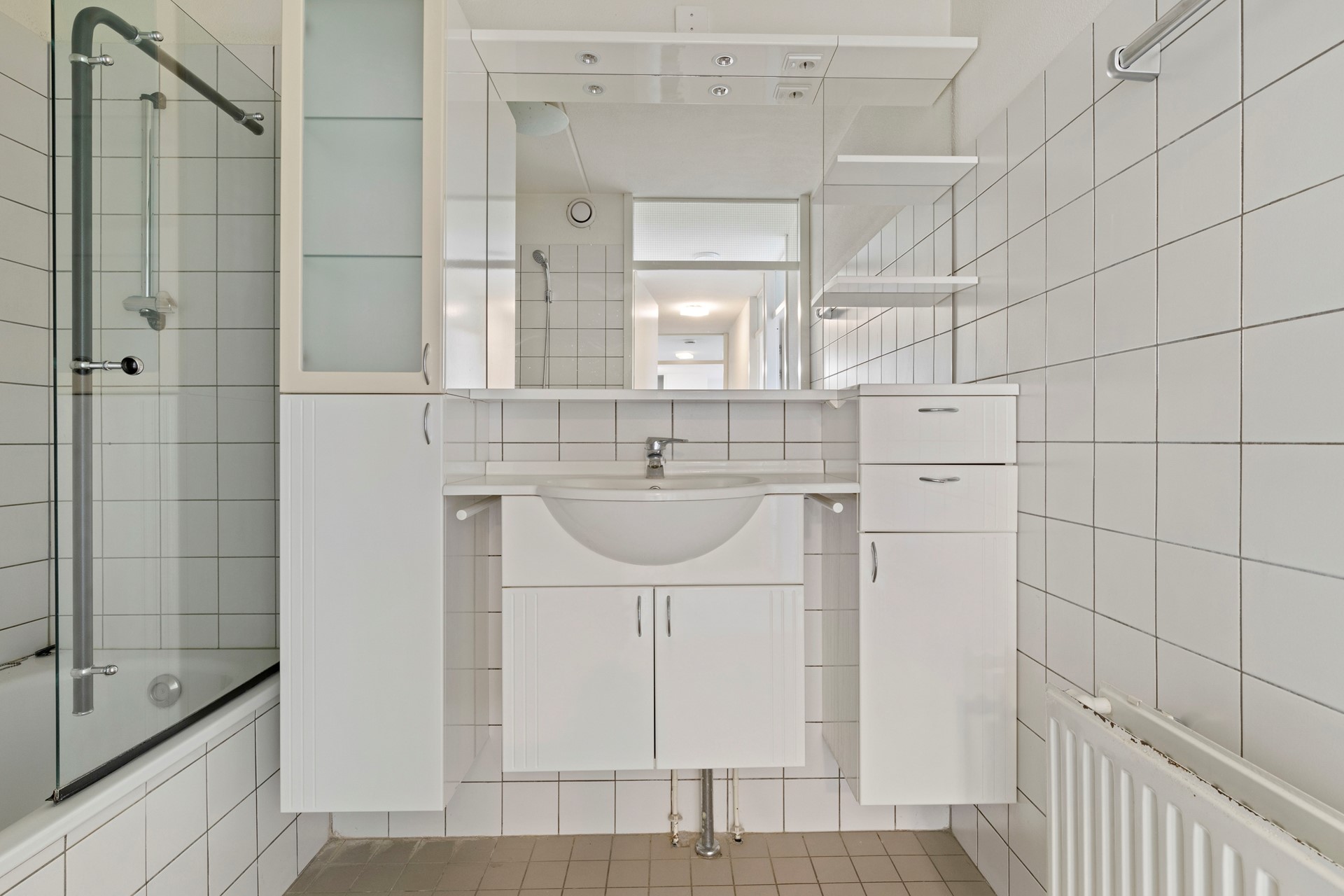 De hal geeft verder toegang tot de meterkast, de technische ruimte, de aparte toiletruimte, de badkamer en 2 slaapkamers. In de technische ruimte bevindt zich de combi CV-ketel (Nefit 2019) en de WTW-installatie. De geheel betegelde toiletruimte is voorzien van een staand closet en fonteintje. De ruim opgezette badkamer heeft een ligbad, aparte douche en een wastafel. Beide slaapkamers zijn ruim van opzet, ca. 9,5m2 en 16m2 groot. Vanuit de masterbedroom is er, net als de woonkamer, toegang tot het balkon. Het balkon (ca. 7m2) biedt veel privacy en is op het oosten georiënteerd. Vanaf het balkon is er een wijds uitzicht over Venlo-Oost.