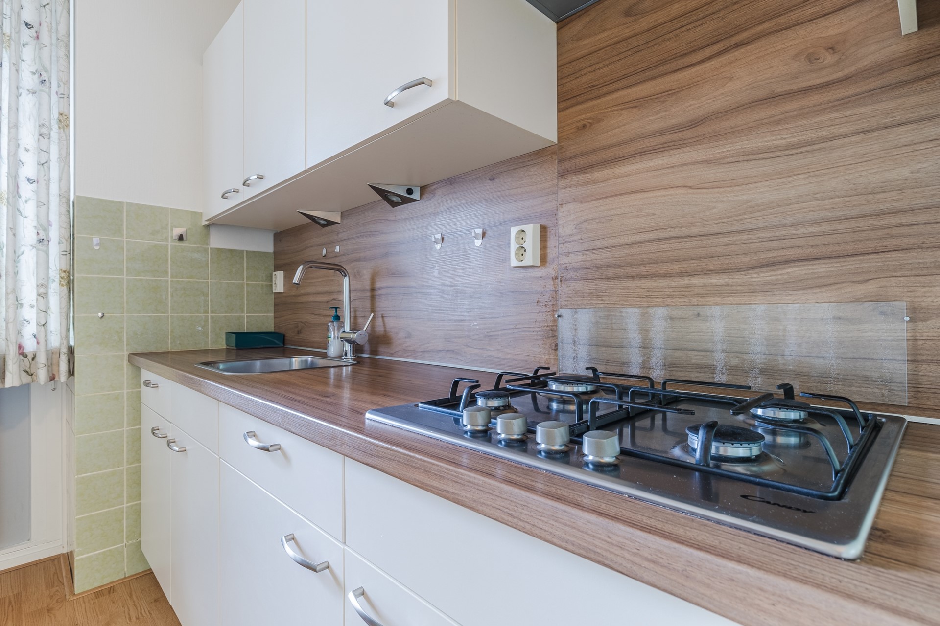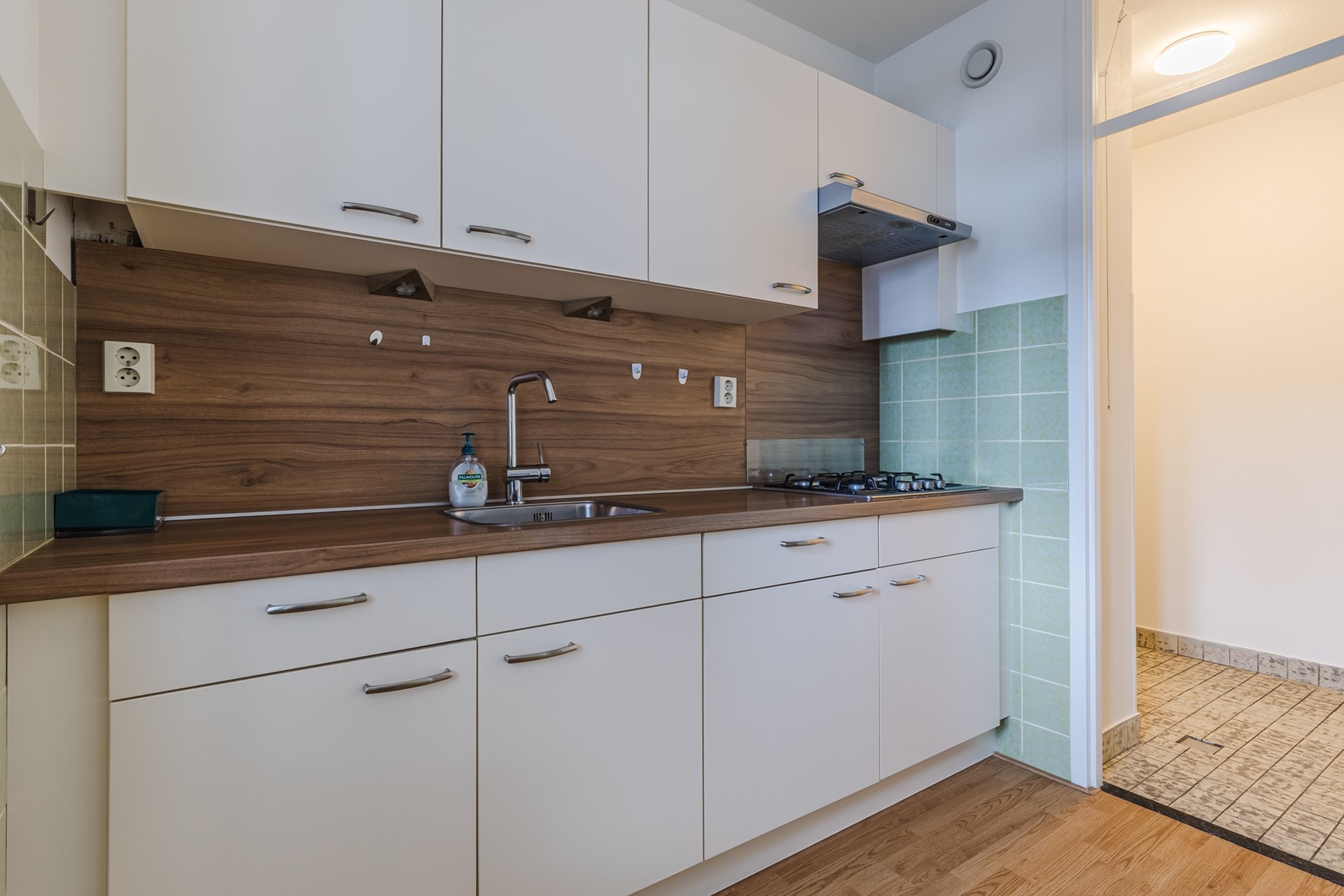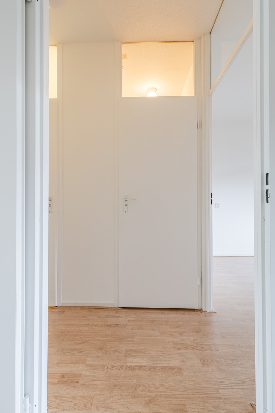 Het gehele appartement behalve de bijkeuken, badkamer en toiletruimte is voorzien van een lichte laminaatvloer. In de overige ruimten liggen tegels.